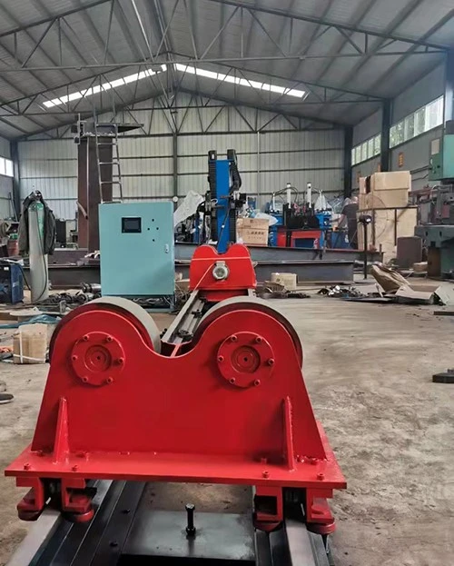 设备关键点描述:此设备用于管法兰两端自动焊接,驱动的稳定性是保证焊接工艺实现的关键,在旋转过程中,必须有向下的压紧力,进而保证驱动轮与工件间的摩擦力,保证旋转稳定性。所以,要求法兰外圆必须加工保证圆度。焊接专机一端固定,满足4米到9米钢管法兰内、外缝的焊接,焊*姿态可进行调整,分别满足内、外缝的焊接且兼顾管径的变化。一主一从可调驱动装置,轮间距可调,两组距离可调,保证满足管子长度和外径的变化;焊接快速一次成型,焊接质量稳定,焊缝饱满均匀。